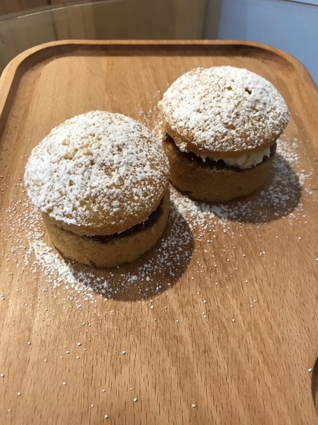 - Victoria sponge cake with raspberry jam and vanilla icing